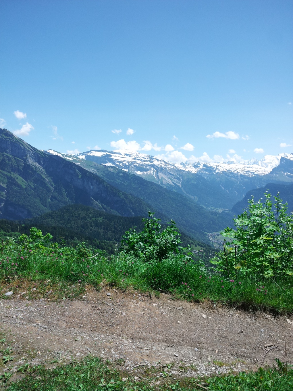 So this is about 6 km up from the start and let’s say I’m under the illusion that the climb must be almost over, that’s when I start seeing snow on the mountains!